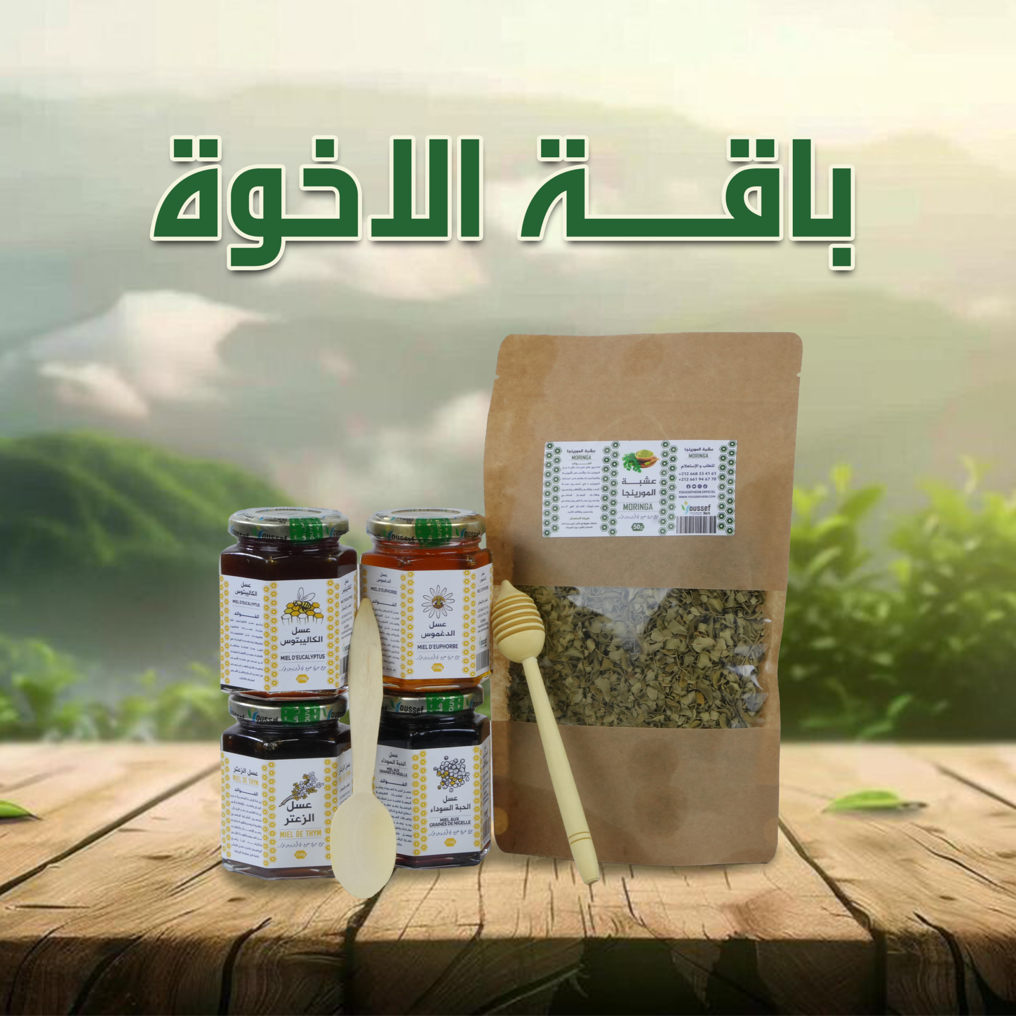 إضافة إلى هدية عبارة عن 50 غ من أوراق المورينجا المجففة عالية الجودة، المعروفة بقيمتها الغذائية الغنية بالفيتامينات والمعادن ومضادات الأكسدة، مع ملعقة وعود خاصين للاستعمال.